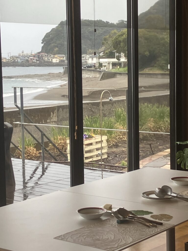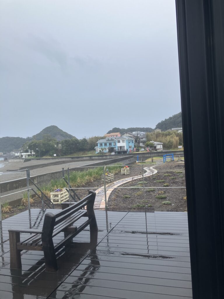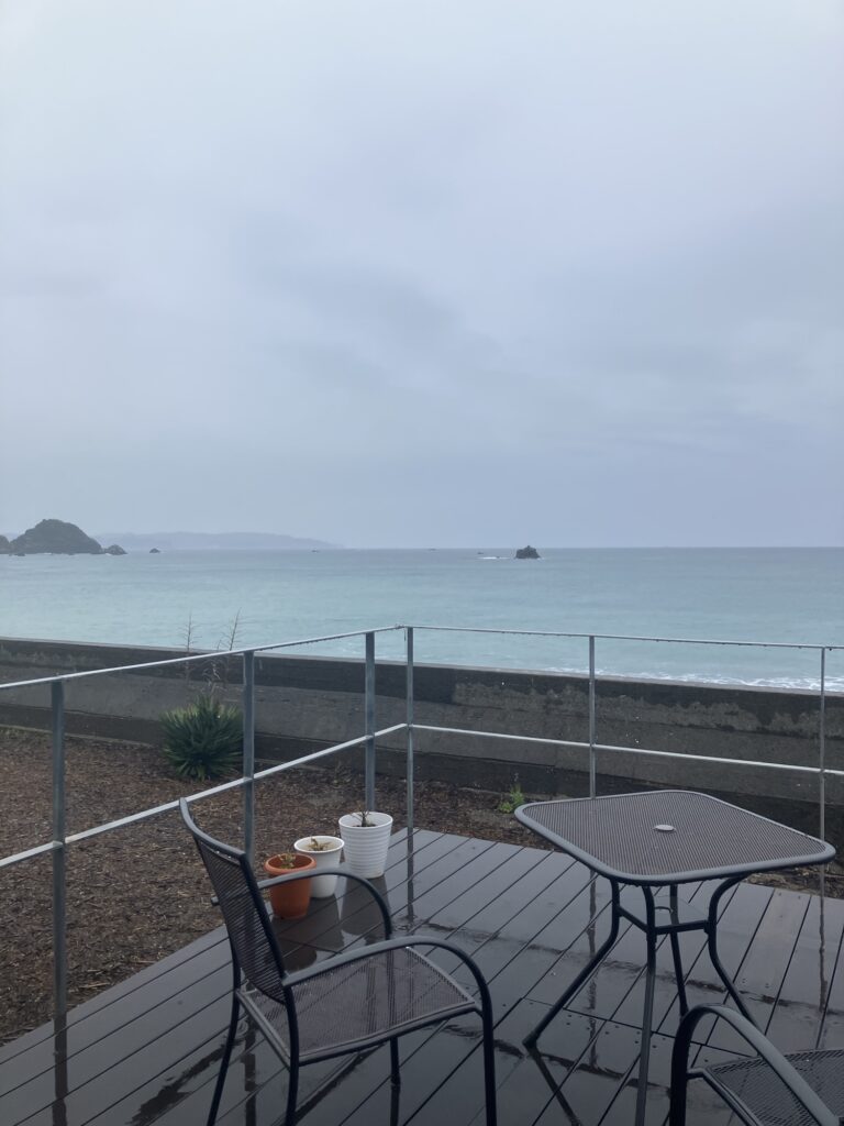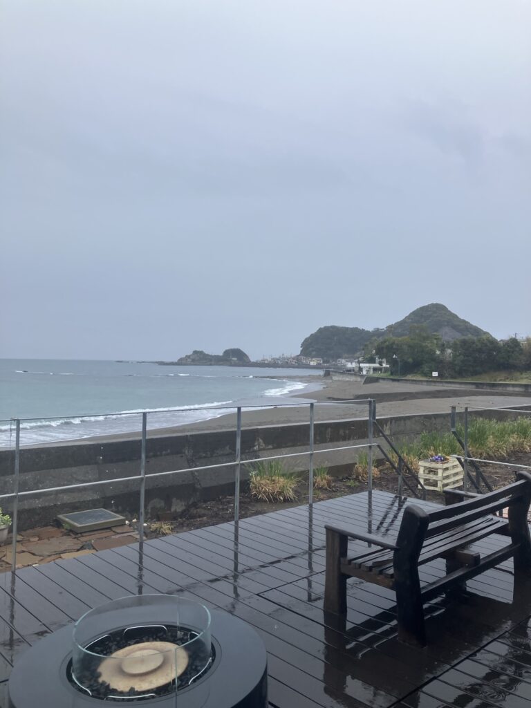 2026年3月23日/月曜日/本日のオルビス前の海と空/雨☔です/波は穏やかな小波です/オーベルジュ/千葉/鴨川/料理の美味しい宿
