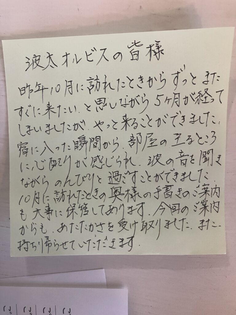 お客様からのサイコーのメッセージ/リピーター様/2度目のメッセージ/又宝物が増えました/オーベルジュ/千葉/鴨川/