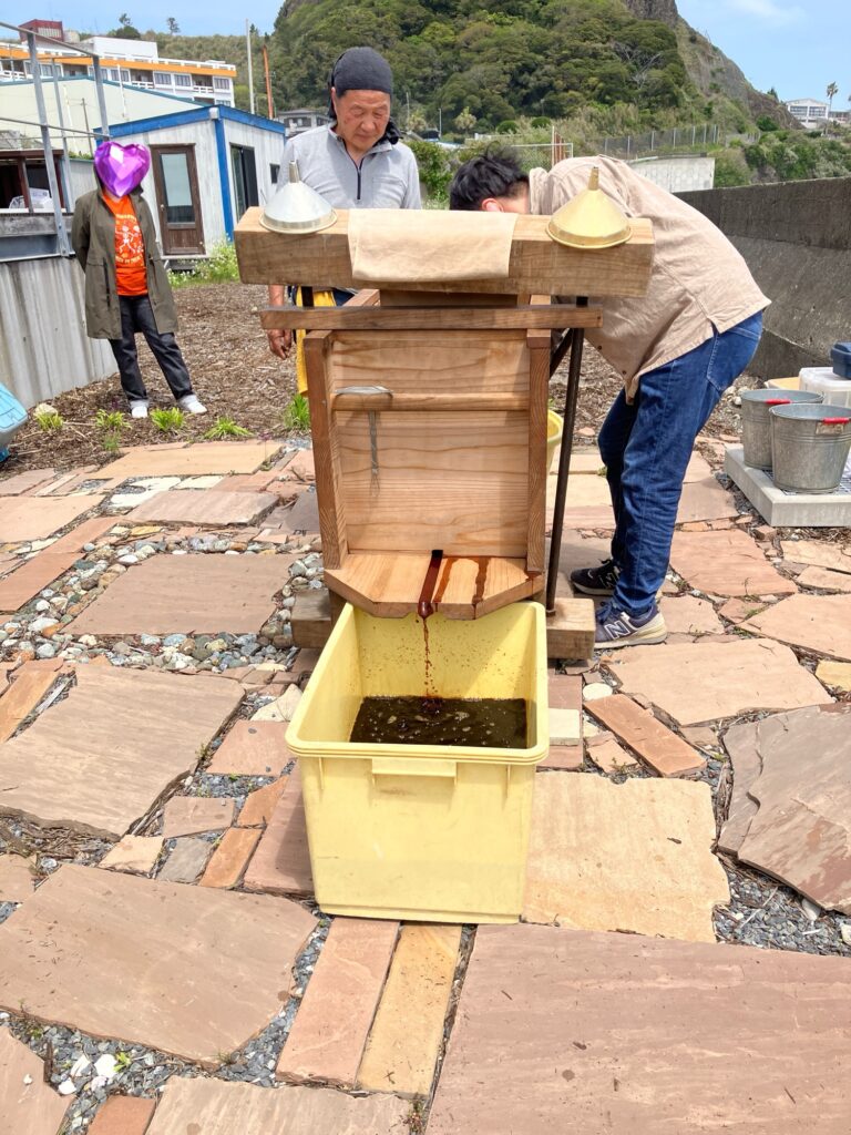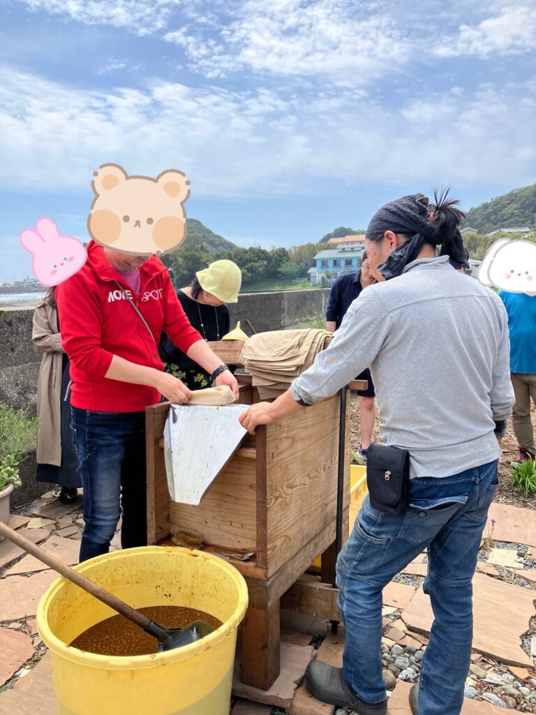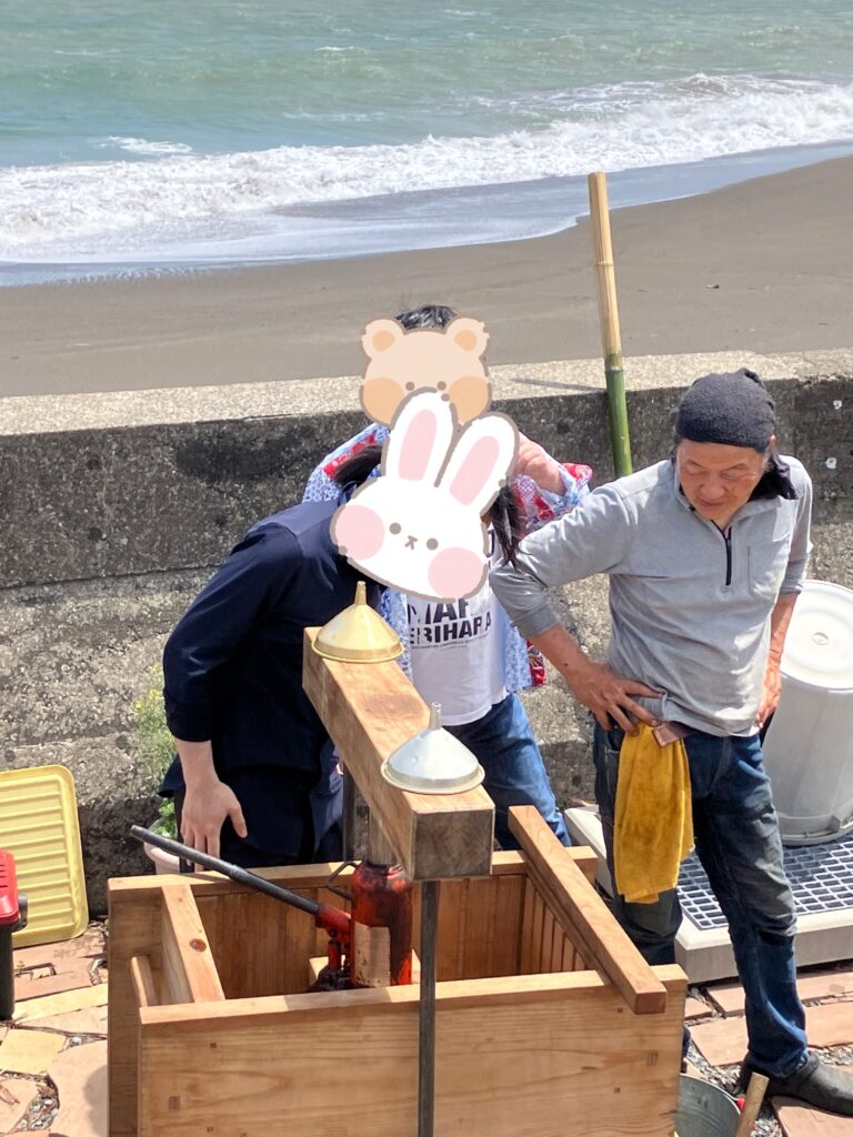 今年2度目の醤油搾りイベント❣️晴れ女のCさんが参加なのでお天気の心配はいらないやっぱり晴☀️でした。ちょっと暑い日でしたが爽やかな海風が心地良い!16名の参加者の皆様の作業も捗ります。